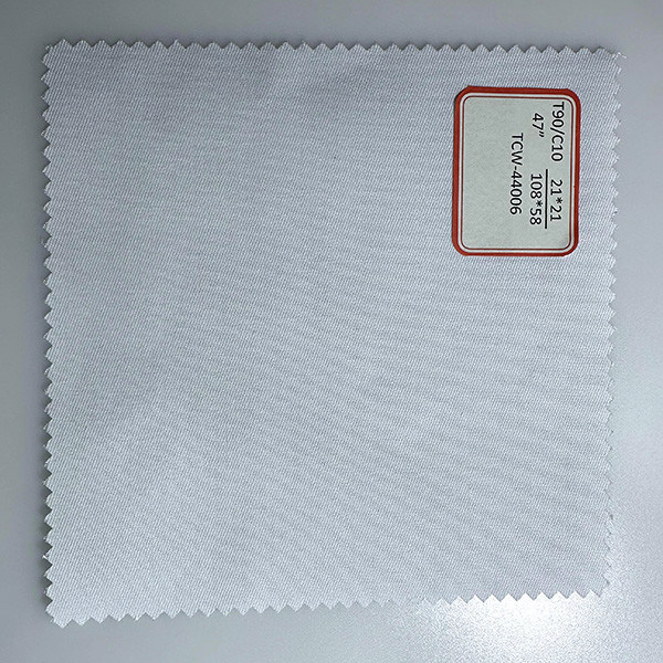 نسيج ملابس العمل البيضاء المصبوغ من البوليستر القطني (TC90/10 21X21 108x58 3/1) هو مادة متينة ومتعددة الاستخدامات مصممة لتطبيقات ملابس العمل.النسيج مصنوع من مزيج من 90٪ البوليستر و 10٪ القطن، يجمع بين قوة ومتانة البوليستر مع الراحة وسهولة التنفس من القطن.مما يجعلها مناسبة لبيئات العمل المطالبة.